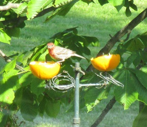 The next week was an anxious one as we catalogued the male finch’s activities. He didn’t feed the chicks as often as his wife had, but he seemed to give them more food when he did come. Possibly he had a larger crop than she did. He was definitely more efficient, depositing regurgitated fruit and seeds in each wide screaming mouth with almost robotic precision. He made sure everyone got something, every time. No small feat, especially considering that the brood was an extra-large one. Normally, the finches had three or four chicks per clutch. This year, they’d had a whopping five.