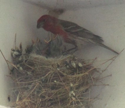 Which brings us to this year. 2020. This crazy, scary, nothing-will-ever-be-the-same-again year. The purple finches came right on schedule, just like always. Their presence was an achingly welcome sight. Here we were in the midst of a lockdown, a pandemic, facing uncertainty in almost every aspect of our human lives. And yet, for these birds, it was business as usual. For some reason, they built their nest in the northeast corner this time. For obvious reasons, we watched them more avidly than ever before.