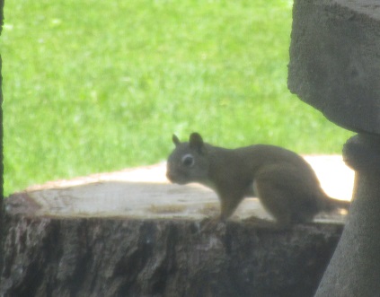A bewildered squirrel investigates the stump of the fallen pine. Luckily we found no evidence of a nest in the branches.