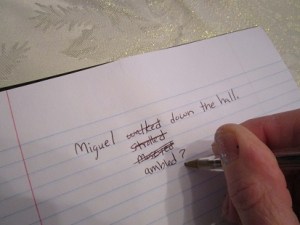 You’re not writing. You want to be writing. So, what’s stopping you? Being able to identify your own personal writing roadblocks and find solutions to getting over those humps is key. My CP, Anna, has trouble writing at her house because there are too many distractions like laundry, cleaning, etc. Her solution: she takes her laptop to a coffee shop. I sometimes have difficulty writing because my cat, Del, is jealous of my computer (if you have a cat or dog, you know exactly what I’m talking about). He sits underneath the table where I’m trying to work and cries (loudly) for attention. My solution: I take my laptop to the living room and sit on the couch, where he can happily curl up beside me while I write. If you check your email too much instead of writing, consider working on an older machine not capable of going online (yeah, these devices still exist – my laptop, which proudly features Windows Millennium Edition, can attest to this) or even try writing in a notebook instead of on a computer. My point is, if you can figure out what’s holding you back, you can overcome it.